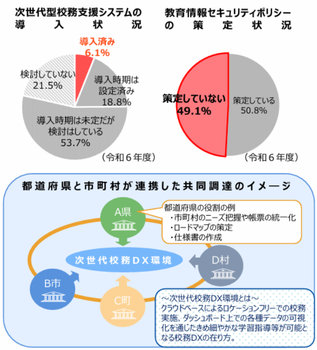 - 次世代型校務支援システム調達支援:教育委員会が次世代型システムを整備するに当たり、相談窓口の設置や、仕様書作成等を支援する専門人材の派遣を行います。これは、システム導入や移行を円滑に進めるための伴走型コンサルティング・サービスの提供に重きを置いた支援です。