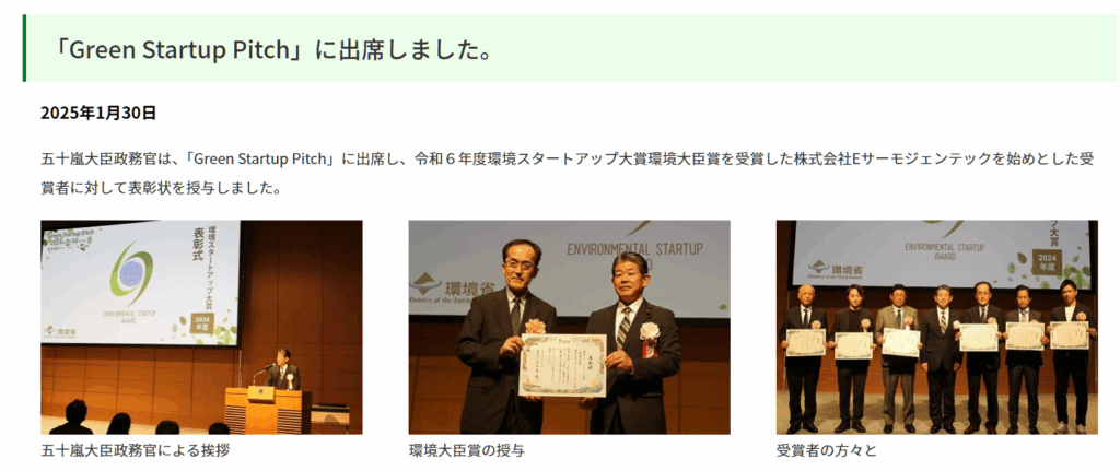 過去の受賞例の中には、国内の環境スタートアップのロールモデルとして、その社会的インパクトを拡大している企業もあります。環境省のウェブサイトでは、過去の受賞者の取組に関する資料や表彰イベントの様子が紹介されています。事例を二つ、ご紹介します。