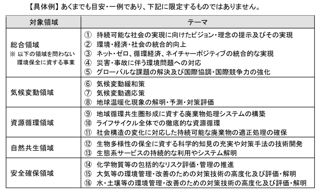 環境保全、特に気候変動、資源循環、自然共生、安全確保などに役立つビジネスや技術を保有する企業が対象です。
