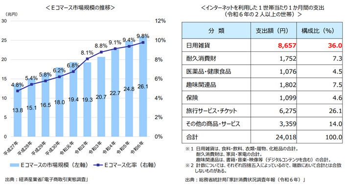 背景には私たちの生活習慣の変化もあります。国の調査によれば、インターネットを利用した1世帯あたりの1か月間の支出では「日用雑貨」が高く、購入頻度も高い傾向にあります。こうした消費スタイルが一般的になることで、ラストマイル配送を担う宅配便ドライバーの負担がさらに増大することが懸念されています。