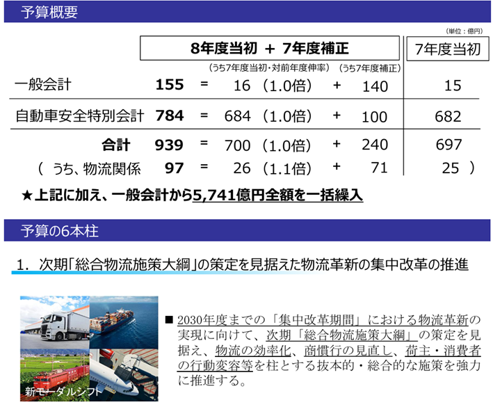 こうした提言を具体化するため、公表された令和8年度(2026年度)当初予算案では、次期「総合物流施策大綱(2026~2030年度)」の策定を見据えた「物流革新の集中改革の推進」に124億円が計上されました。政府は2030年度までを集中改革期間と位置づけており、今回の予算の大きな特徴は、令和7年度補正予算(108億円)と一体的に運用することで、総額232億円規模の切れ目ない強力な支援を行う点にあります。 特に2026年度は、「レベル4自動運転トラック」の社会実装に向けた大きな転換点となります。予算には、自動運転トラックの社会実装に向けた運行・拠点整備の支援や、陸・海・空を連携させた「新モーダルシフト」の推進など、物流全体の強靭化に向けた施策が幅広く盛り込まれています。