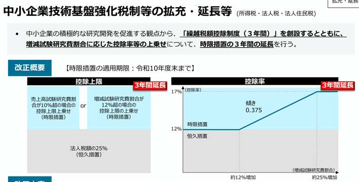 Go-Tech事業は、「大企業には真似できない中小企業の強み=技術力」を最大限に伸ばすための中核施策です。「中小企業技術基盤強化税制」の拡充により、研究開発に取り組む際の税負担も軽減される仕組みが整っています。