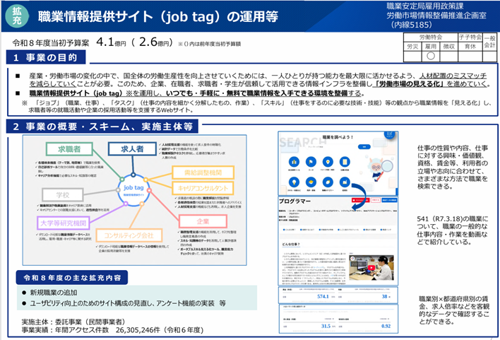 職業情報提供サイト(job tag)の運用等