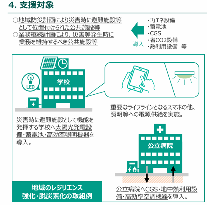 地域の防災拠点や避難施設となる公共施設の脱炭素化・レジリエンス強化