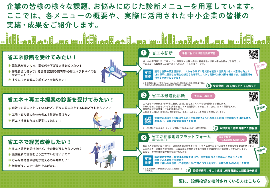 「光熱費を下げたいが、どの設備から更新すれば効果的か分からない」という企業におすすめの支援です。