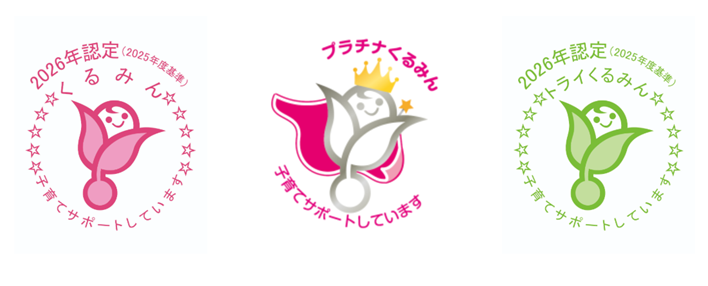 「子育てサポート企業」として、厚生労働大臣の認定を受けた証です。認定を受けた企業が、より高い水準の取組を行い一定の基準を満たした場合、申請を行うことによって優良な「子育てサポート企業」として、「プラチナくるみん認定」を受けることができます。